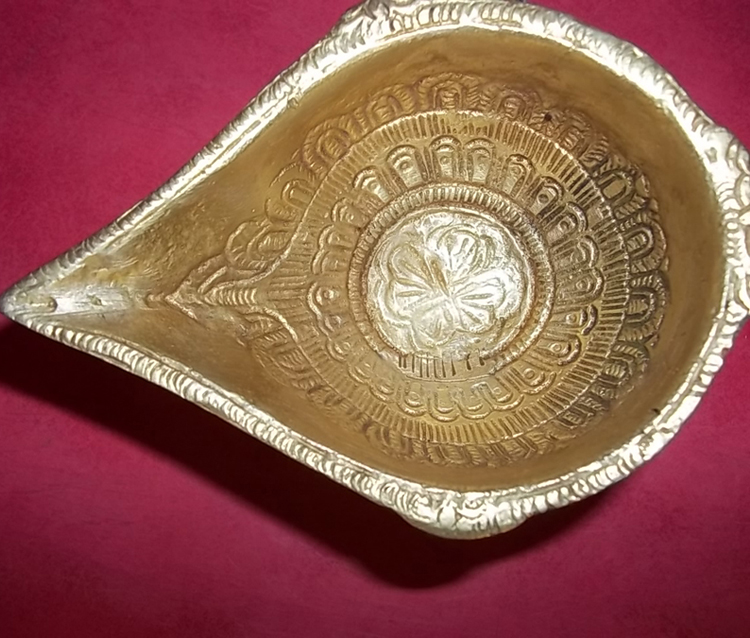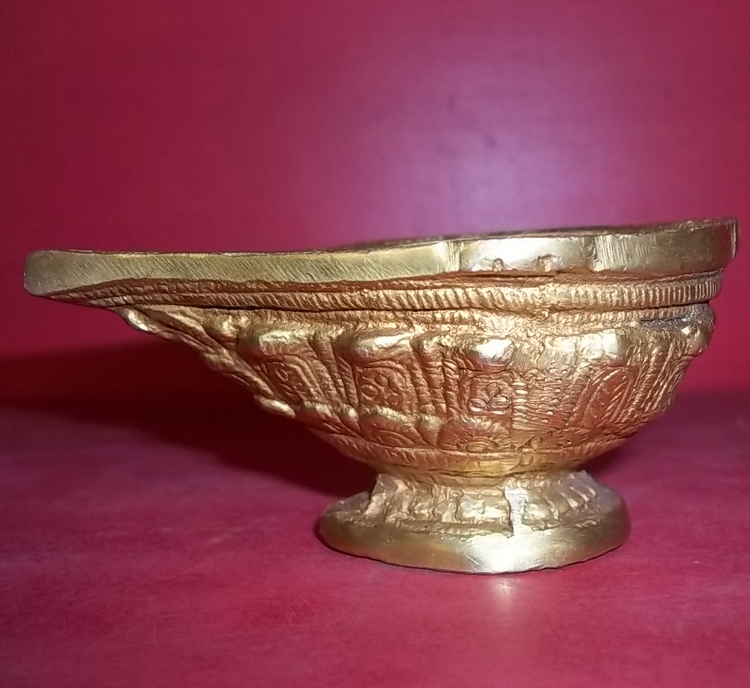 Product Description: Single large ornamental Diya, ideal for poojas where the diya is required to be kept on for longer hours. Or a simple ornamental piece. You can order two pieces for Rs. 1150/-.